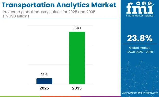 NEWARK, DE, UNITED STATES, November 14, 2025 /EINPresswire.com/ -- The global transportation analytics market is entering a decade of accelerated expansion, projected to rise from USD 15.6 billion in 2025 to USD 134.1 billion by 2035, registering a powerful CAGR of 23.8%. The rapid evolution of predictive traffic models, multi-modal optimization tools, and real-time mobility intelligence is reshaping how cities, logistics operators, and public transport agencies manage growing mobility challenges.
